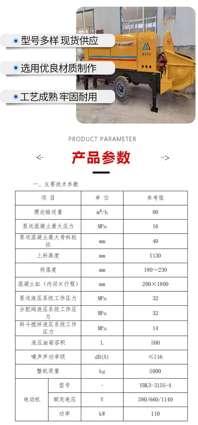 今天帶大家了解一款重磅產(chǎn)品——80礦用混凝土泵。這款產(chǎn)品主要應用于礦業(yè)領域,具有強大的輸送能力,能夠滿足各種復雜環(huán)境下的混凝土輸送需求。